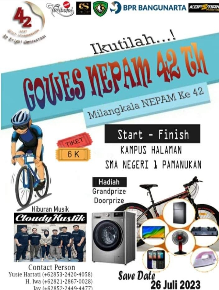 Subang, Nitikan.id – SMA Negeri 1 Pamanukan dalam rangka memperingati hari jadinya yang ke 42 akan menggelar event sepeda gembira dengan tajuk Gowes Nepam 42th.