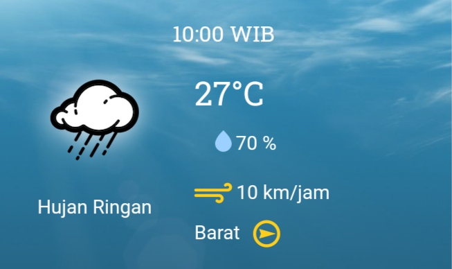 Sedangkan di kecamatan Ciater pada waktu yang sama hujan ringan hingga sedang akan turun dengan suhu udara 25°C s/d 24°C pada sore hari.