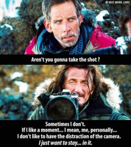 “To see the world, things dangerous to come to, to see behind walls, draw closer, to find each other, and to feel. That is the purpose of life.” Walter Mitty