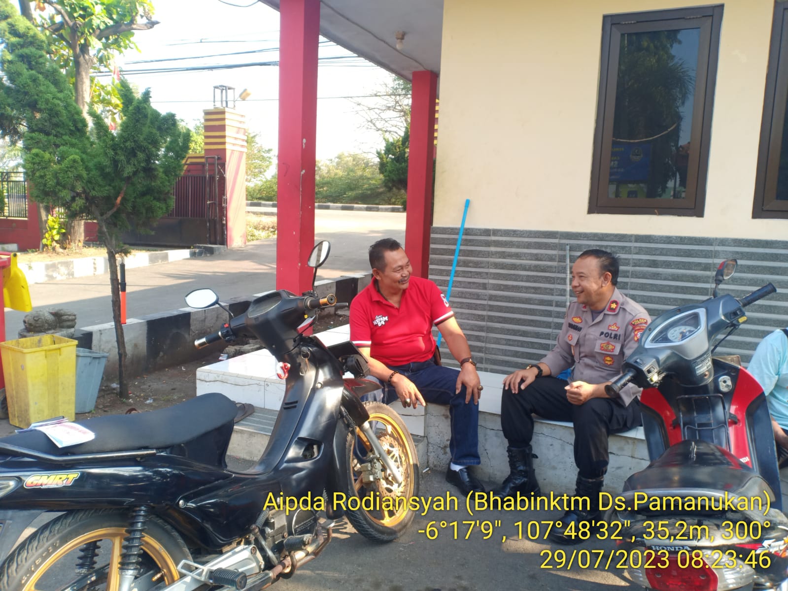 SUBANG, Nitikan.id – Kapolsek Pamanukan Polres Subang melakukan Sambang Tokoh Masyarakat di Pamanukan dalam rangka menciptakan situasi yang kondusif terkait Harkamtibmas (Pemeliharaan Keamanan dan Ketertiban Masyarakat) diwilayahnya. Sabtu, (29/7/2023).